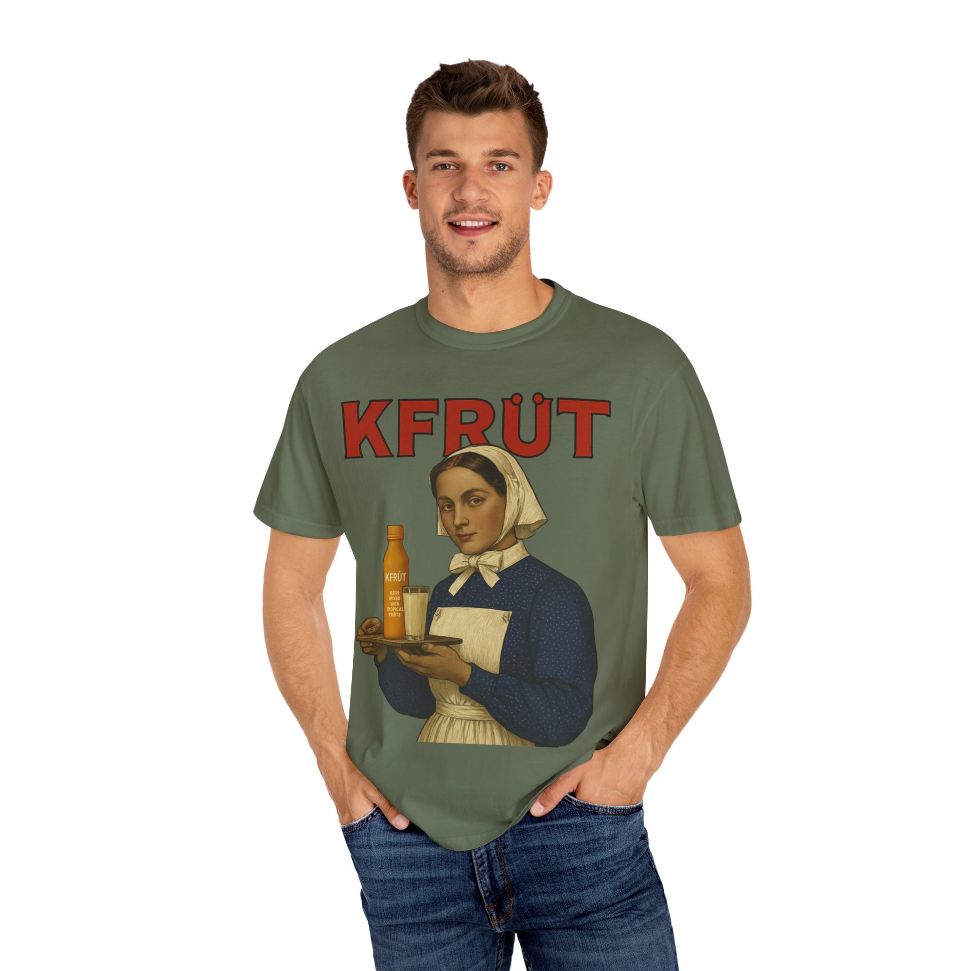 Start a healthy trend. The KFRŪT "Vintage Health" tee transforms early 20th-century propaganda art into a modern statement of wellness. The unique design celebrates the power of kefir with a bold, retro graphic that’s guaranteed to turn heads and start conversations.